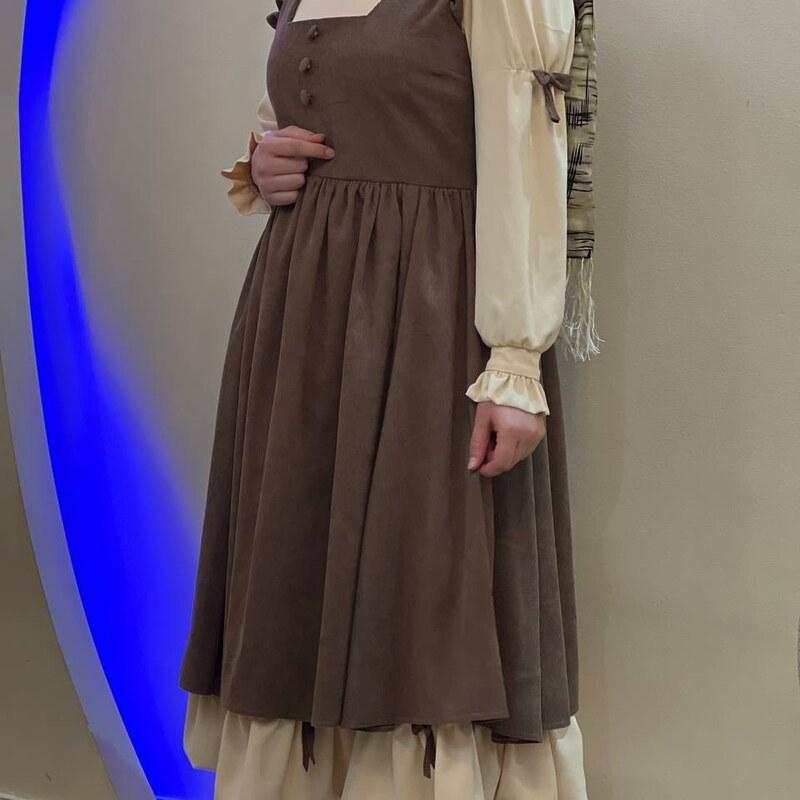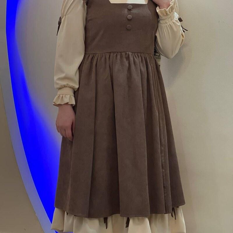 ست پیراهن سارافون دخترانه جنس کرپ مازراتی و مخمل کبریتی فری سایز
