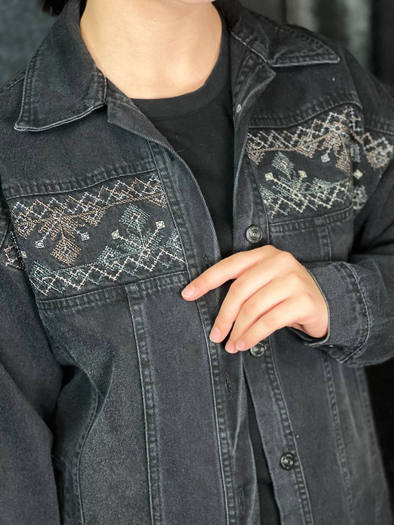 عرض سینه 62 _ قد 75 _ آستین از سر شانه تا مچ 75